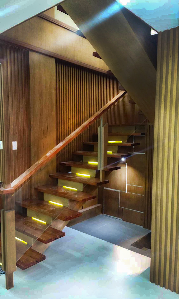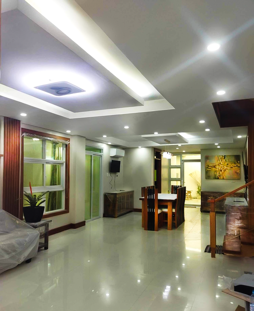 The interior of this freshly constructed two-storey residential building in B.F. Homes Parañaque is warm and inviting. The neutral scheme gives furniture and decors their due attention, while the details in the wooden wall paneling boost style and texture of the interiors.